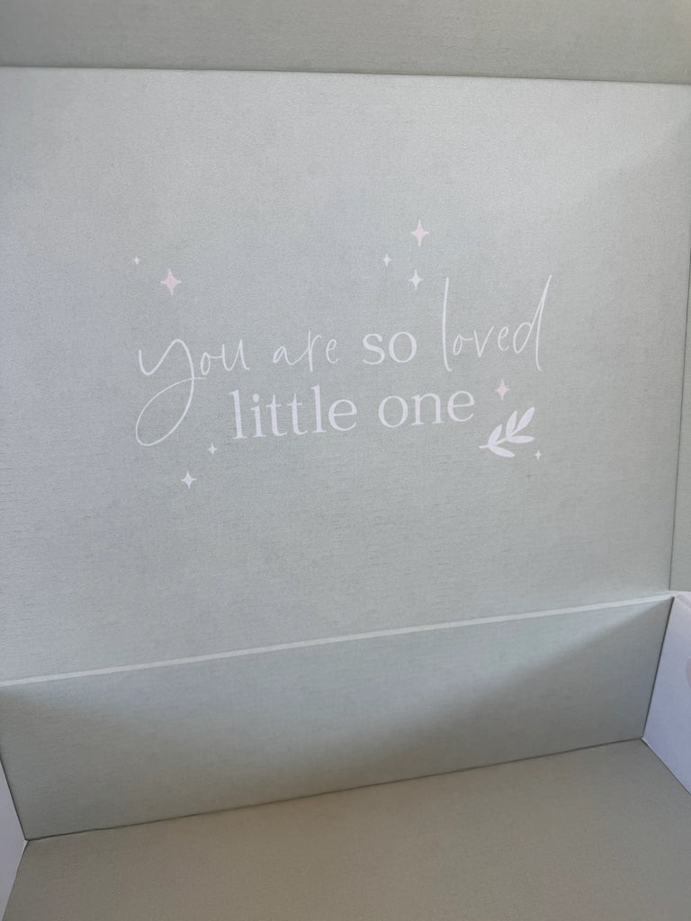 • Or our Signature Willow Dreamer Gift box with the words "You are so loved little one" on the inside lid.