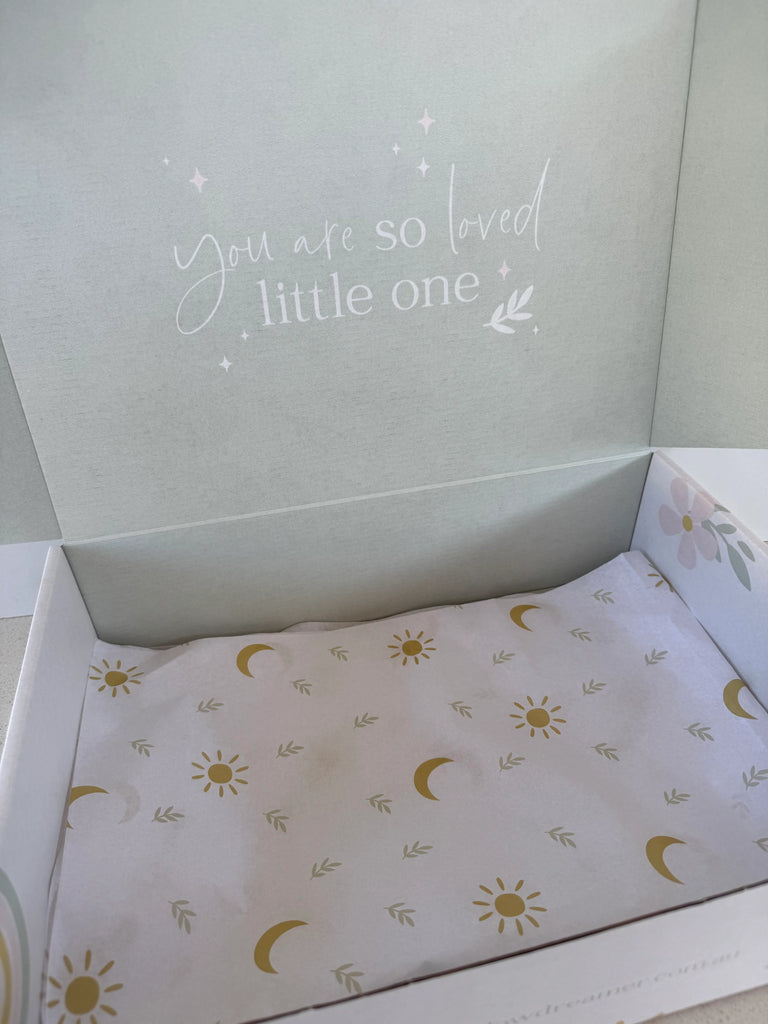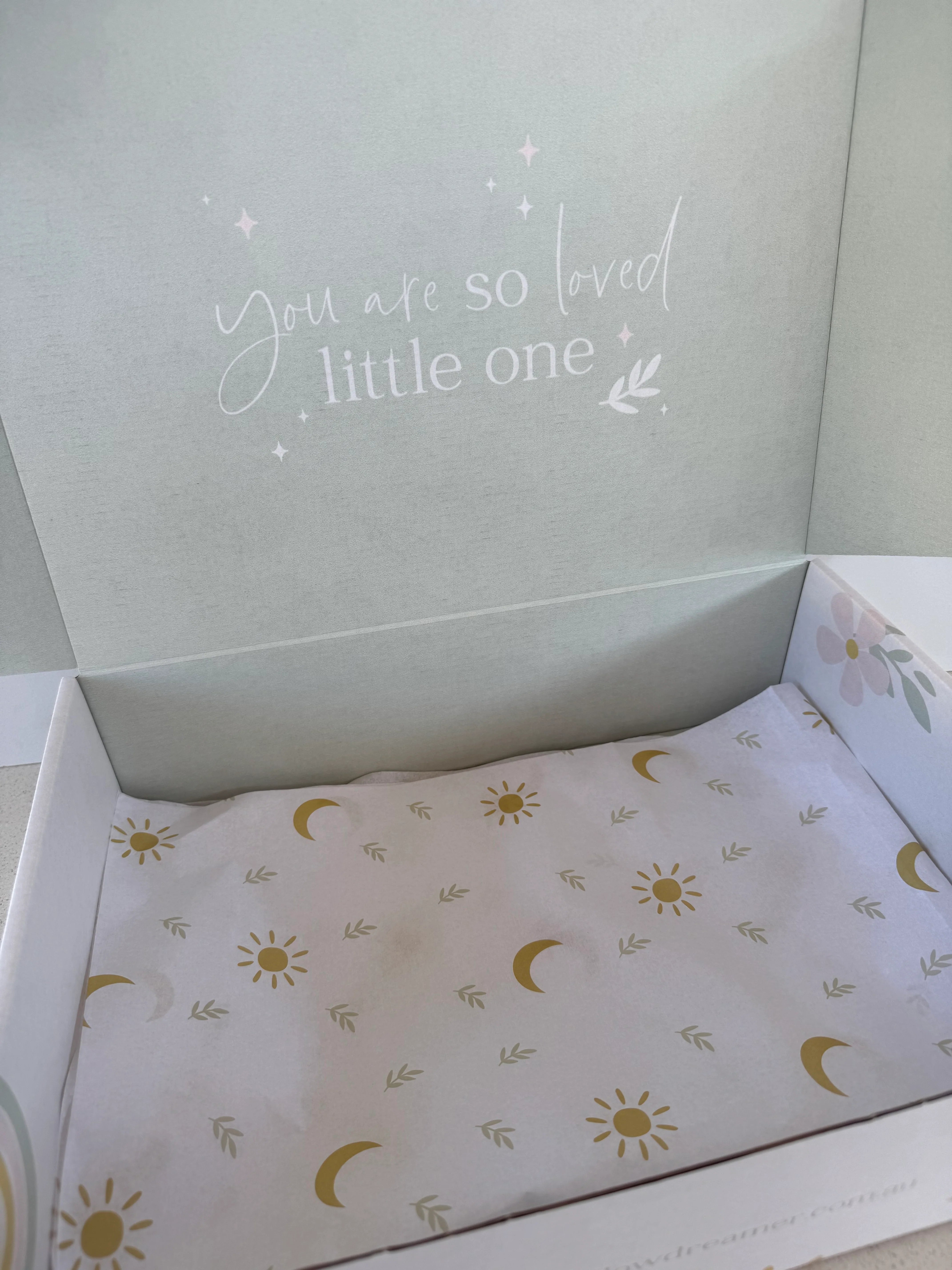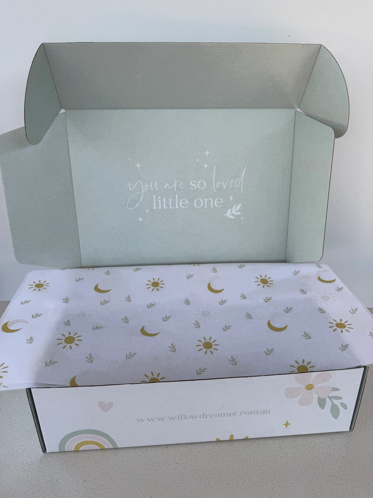 • Or our Signature Willow Dreamer Gift box with the words "You are so loved little one" on the inside lid.