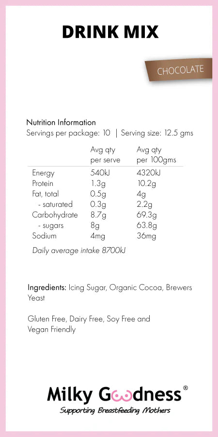 Your favourite Milky Goodness Lactation Hot Chocolate is now available in convenient single-serve sachets — perfect for busy mums who need a milk supply boost on-the-go.