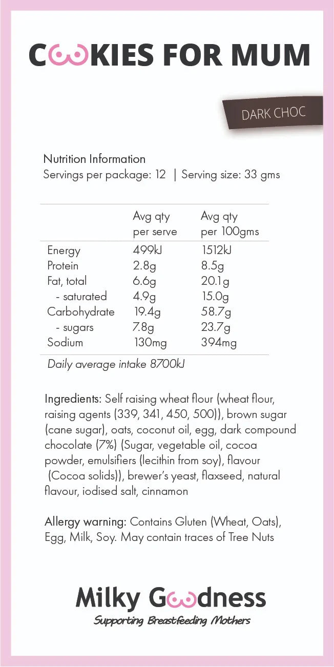 Each box contains 12 cookies that are heat sealed in pairs, allowing for an extended shelf life of 12 months. Store in a cool dry place