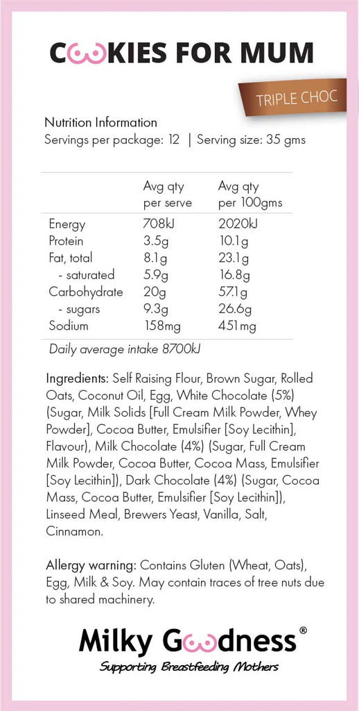 Jam packed full of natural galactagogues including Flaxseed, Brewers Yeast & Oats which help to boost & support your milk supply while breastfeeding