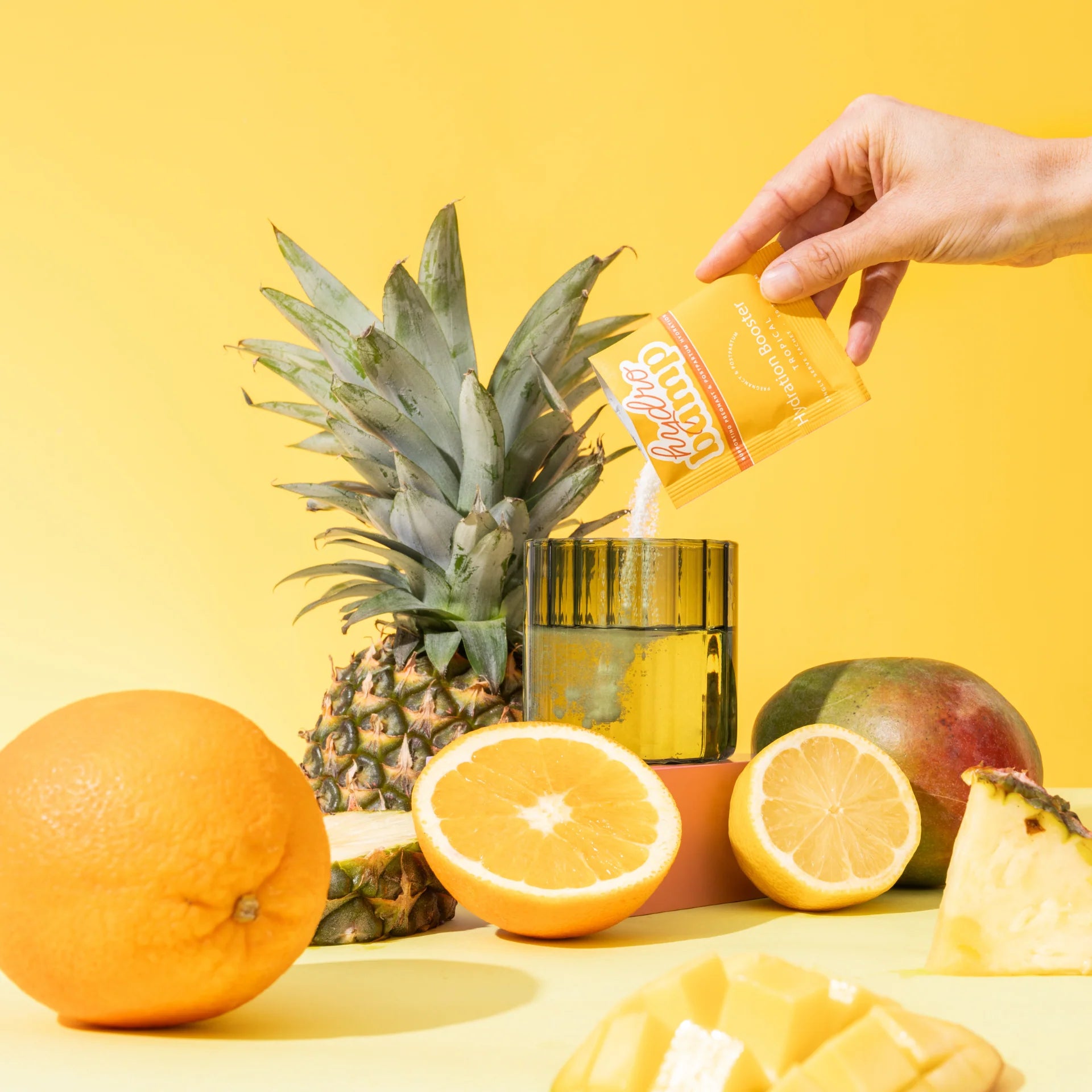 Tropical: Sweetener (Stevia, Erythritol), Dextrose Anhydrous, Maltodextrin, Mango Powder, Pineapple Powder, Lemon Powder, Orange Powder, Tartaric Acid, Sodium Chloride, Potassium Chloride, Magnesium Phosphate, Calcium Citrate, Sugar Cane Powder, Citric Acid, Vitamin C