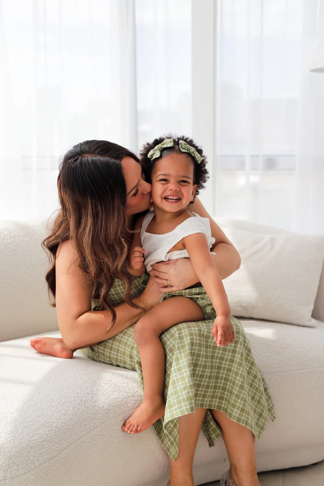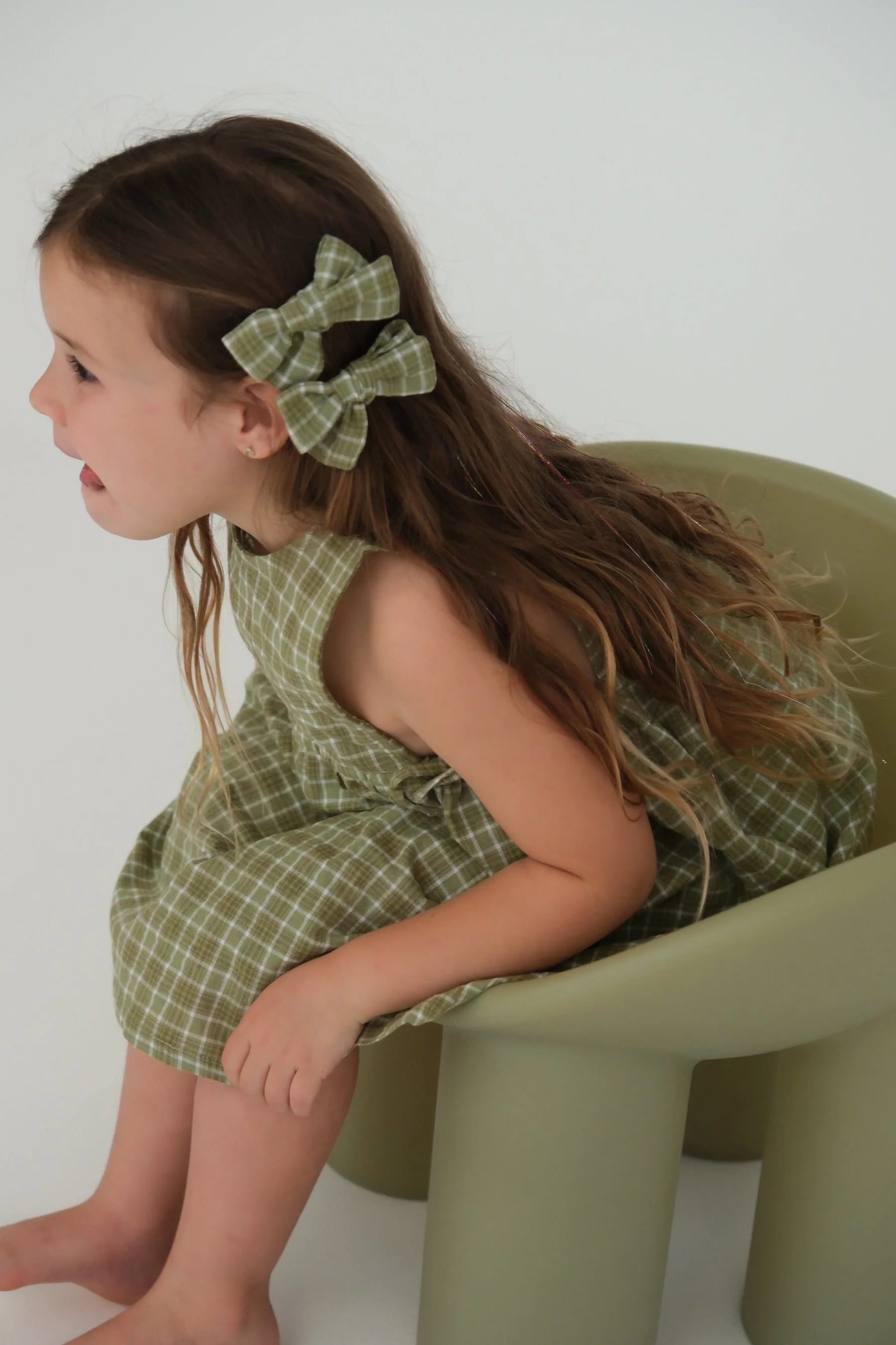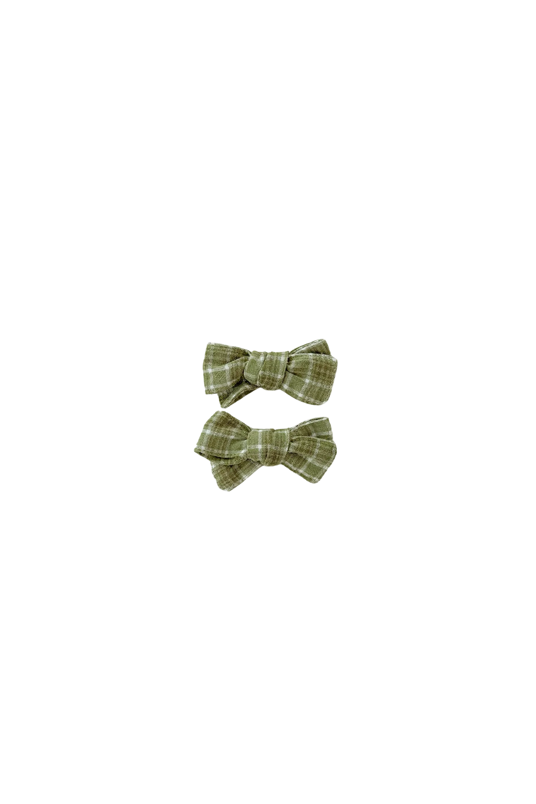 2 x cotton bow hair clips in our beautiful Thyme fabric.