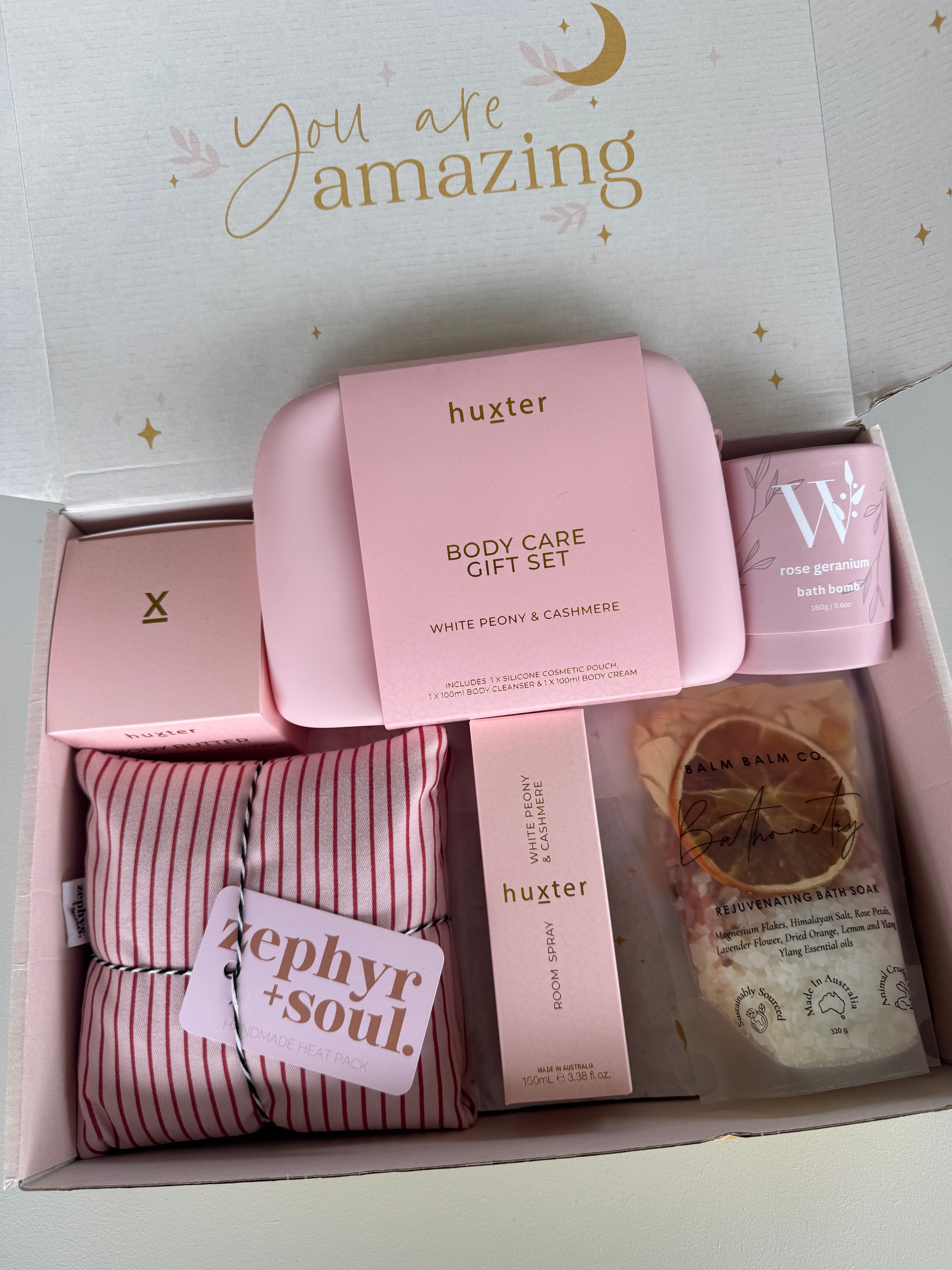 Your items will be arranged perfectly in our signature Willow Dreamer gift box with the words "You are amazing" on the inside lid of the box to remind mamas just how amazing they are!