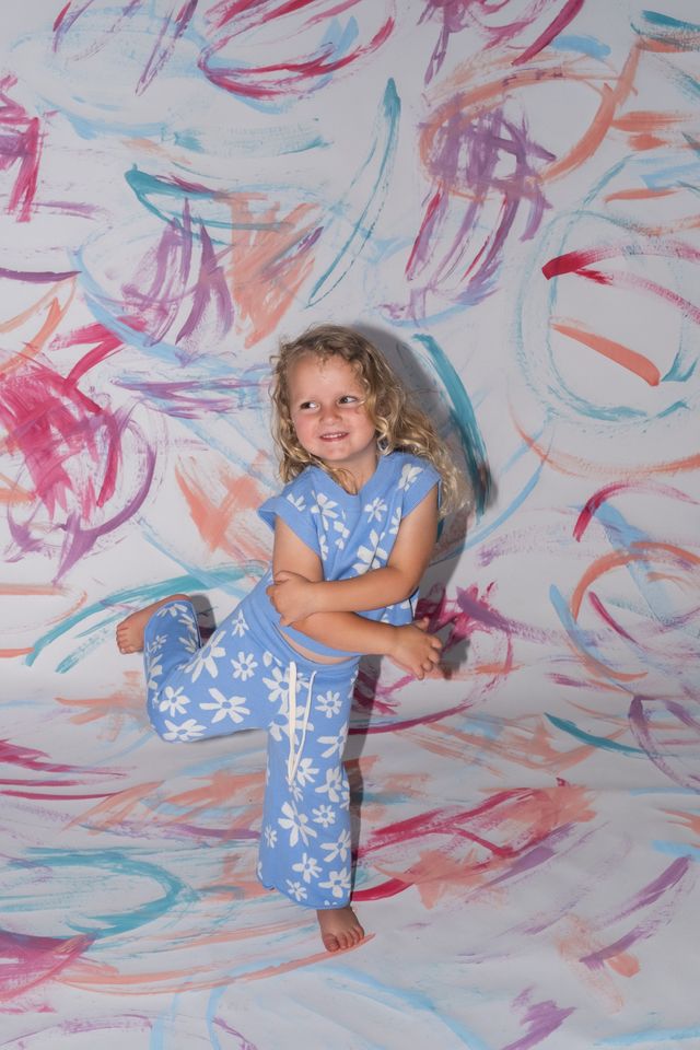 Organic Wild Flower Knit Pant - Marina - 0 is backordered and will ship as soon as it is back in stock.