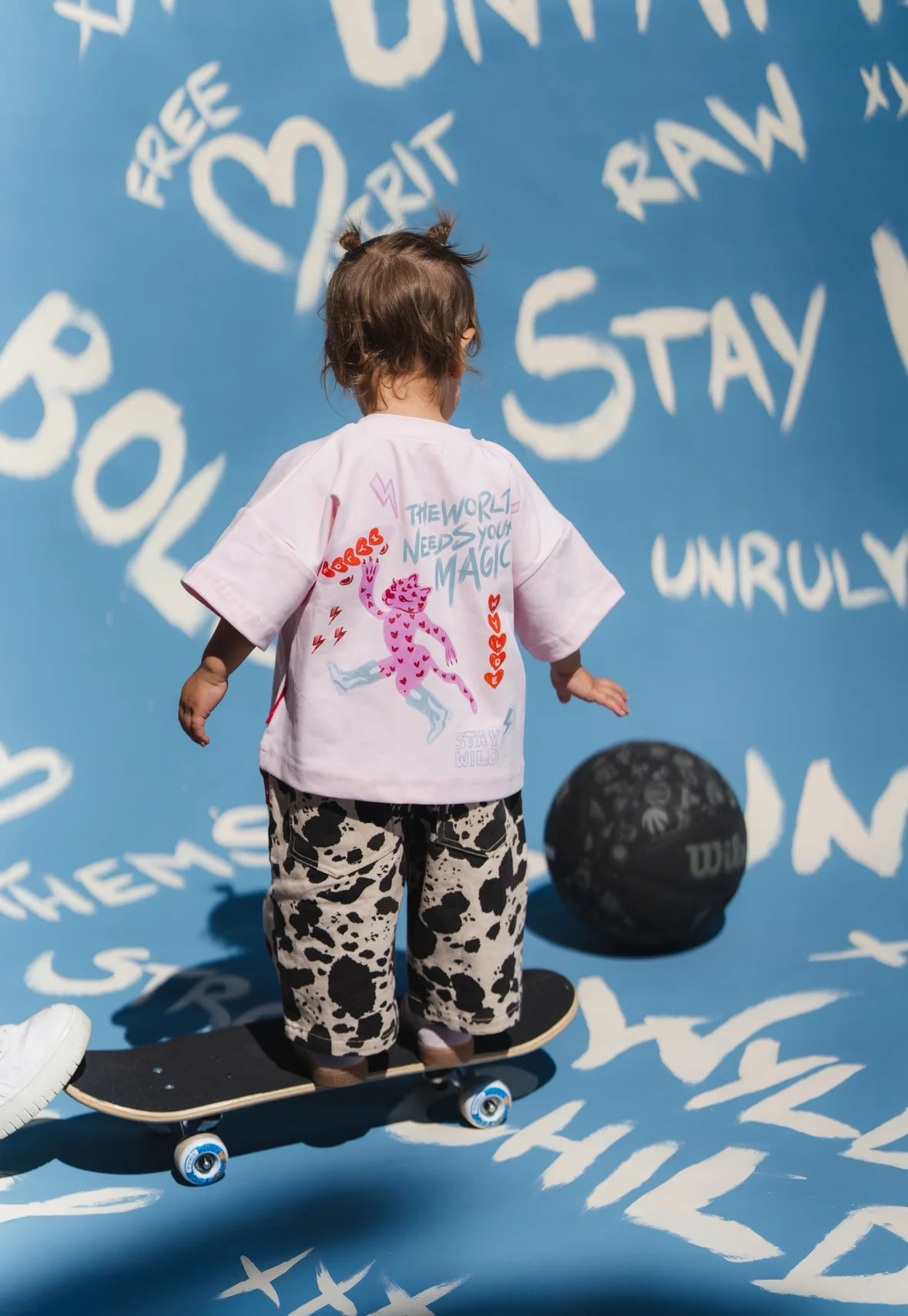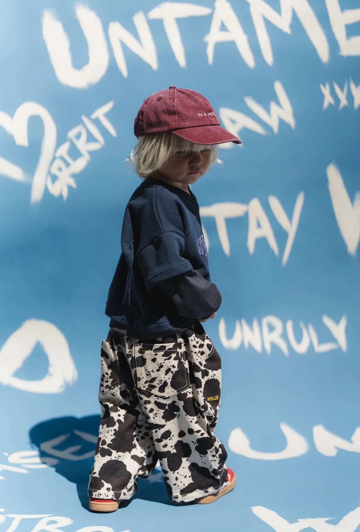 Our Outlaw Jeans feature a bold cow print designed for minis who were made to stand out and break the rules. Crafted from premium durable denim with our signature oversized fit, they’re the ultimate statement piece for everyday Wylde wear.