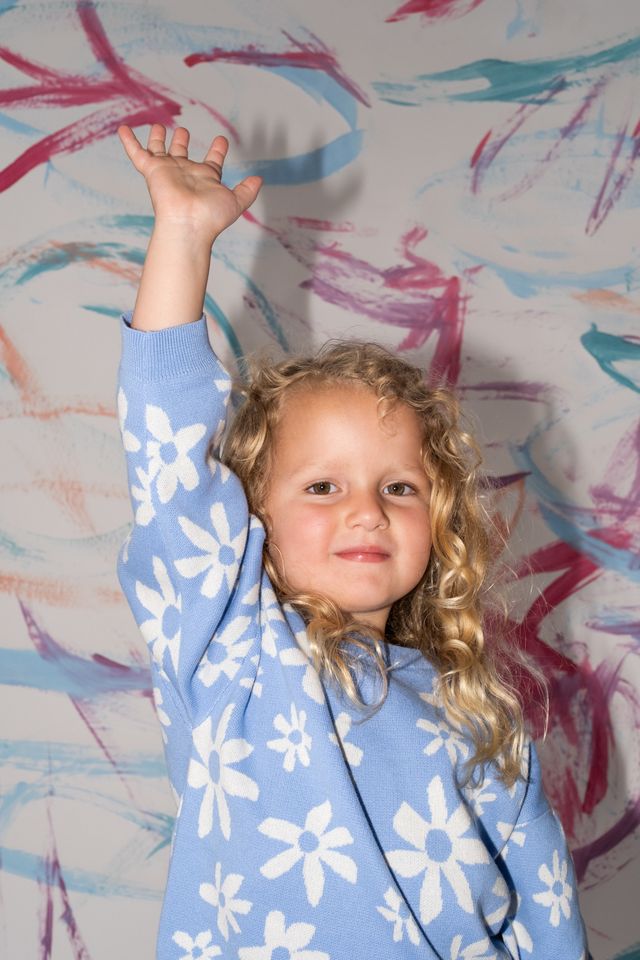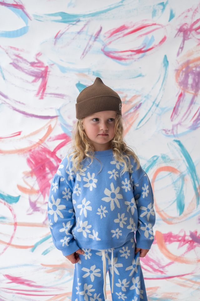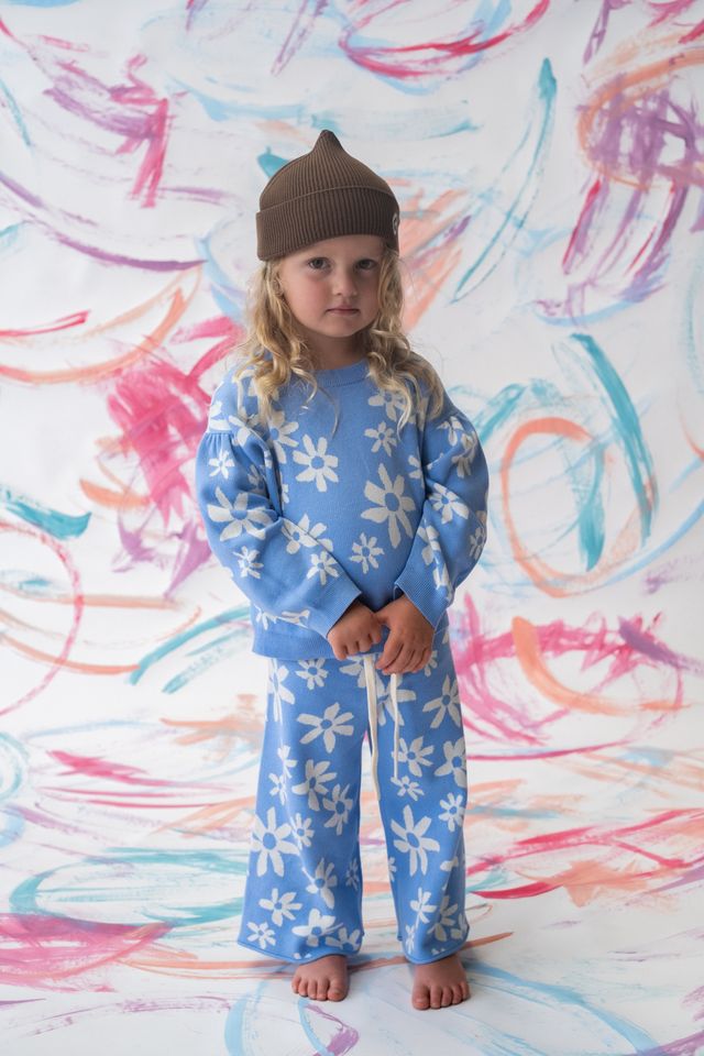 Organic Wild Flower Knit Pull Over - Marina - 0 is backordered and will ship as soon as it is back in stock.