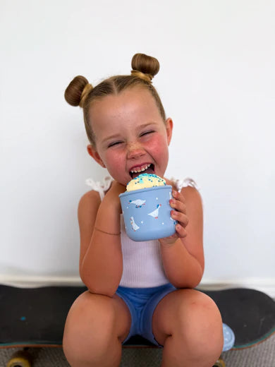 THESE REUSABLE SILICONE SNACK POTS ARE MADE FOR LITTLE HANDS WITH BIG SNACK CRAVINGS. UNBREAKABLE, FLEXIBLE AND LEAK RESISTANT, OUR SILICONE SNACK POTS ARE BUILT FOR LUNCHBOXES, NAPPY BAGS, AND SNACKS ON THE GO. GREAT FOR YOGHURT, DIPS, FRUIT, DRY SNACKS AND ANYTHING IN BETWEEN!