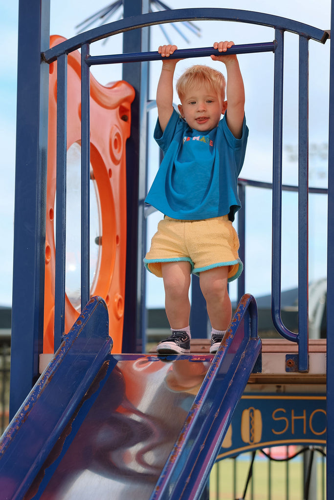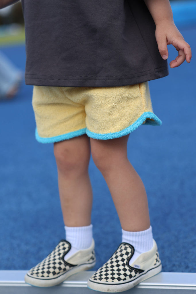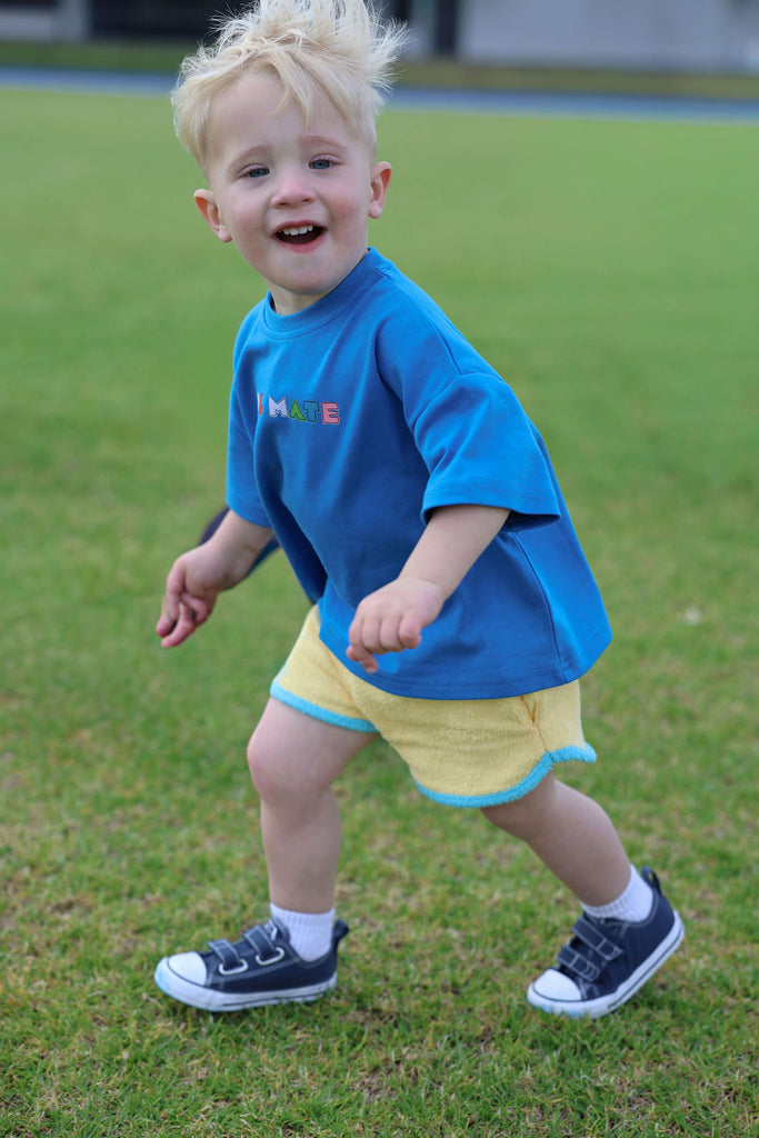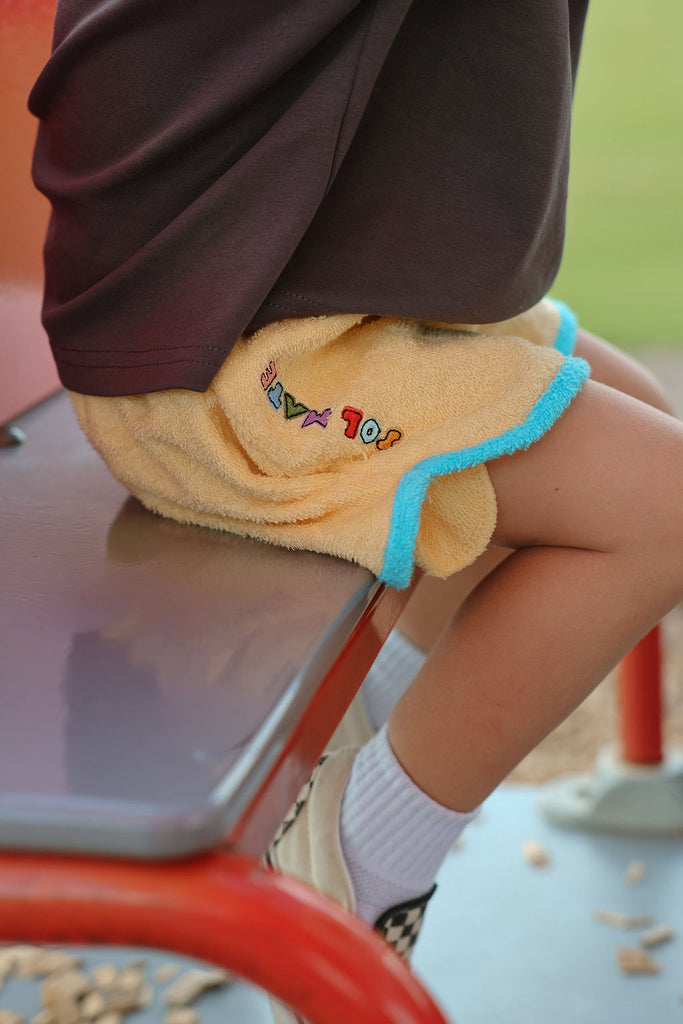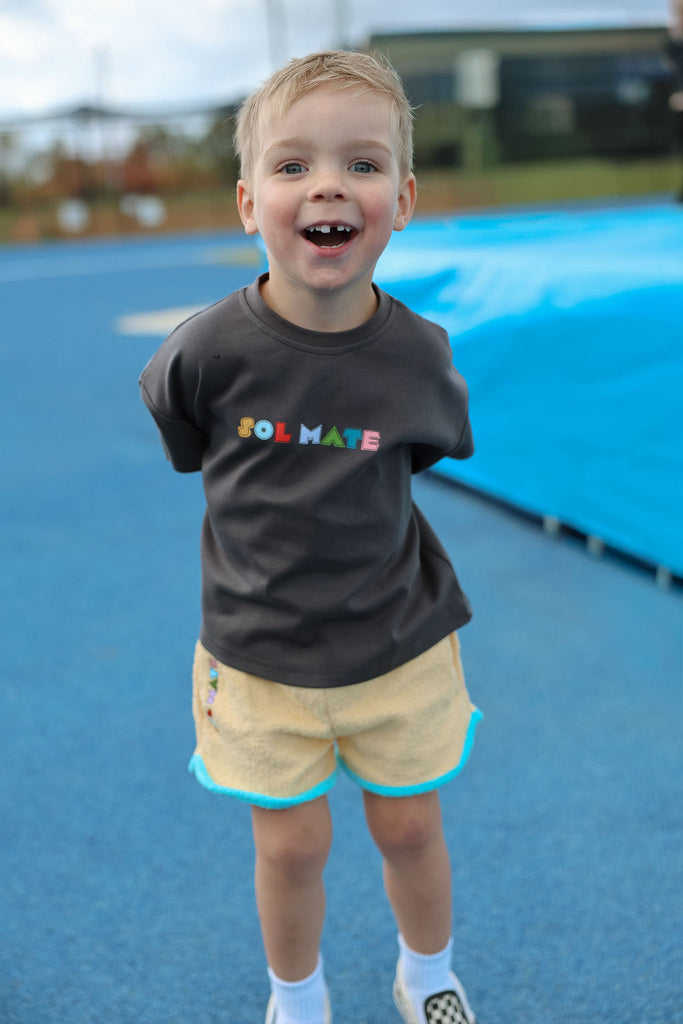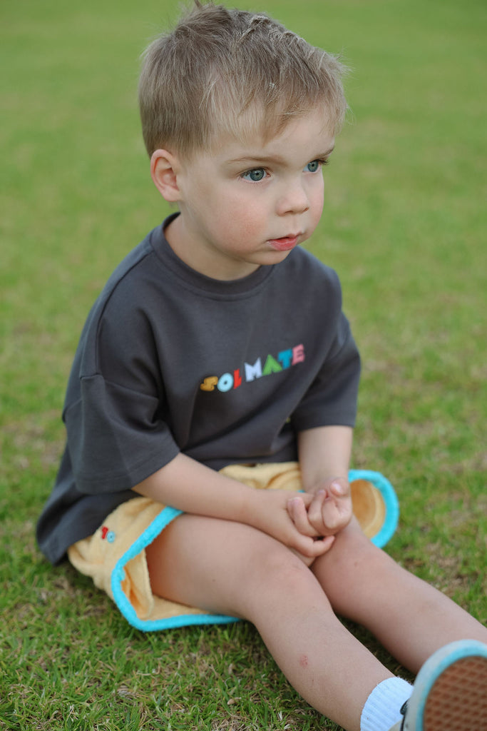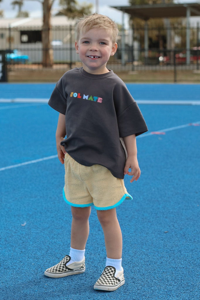 Soft, comfy, and made for all the fun stuff. These terry towelling shorts are a total summer staple, featuring side pockets, contrast trims, and our iconic SOLMATE embroidery. Designed to mix and match perfectly with our Colour Club Essentials Tees for the ultimate play-ready look.