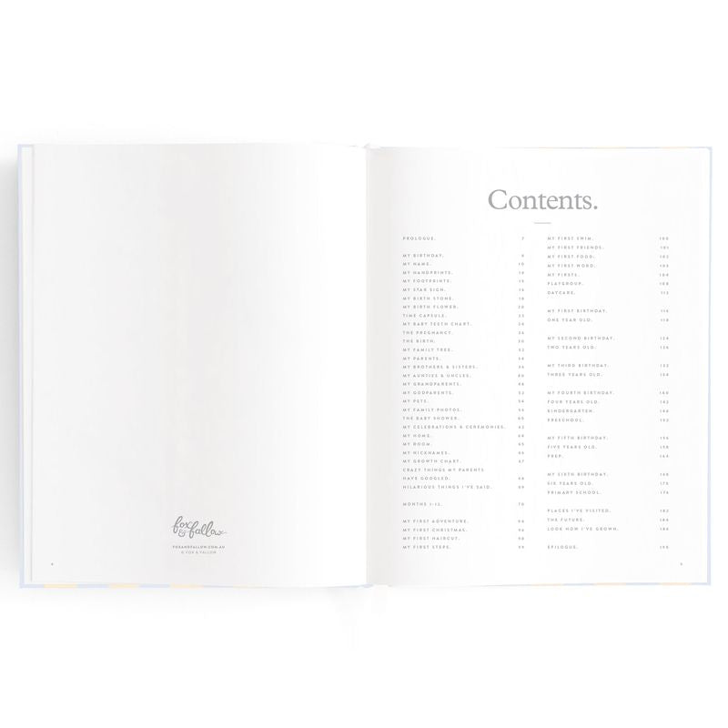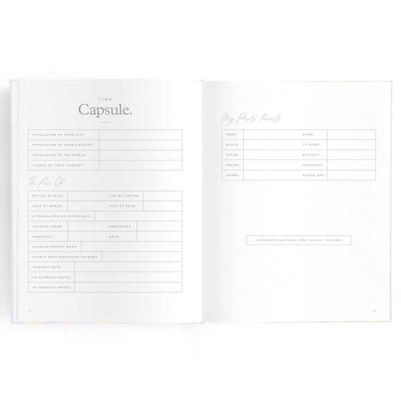 A beautiful keepsake for the whole family to enjoy. Includes: important milestones and firsts, family profiles, family tree and travel map, playgroup and daycare through to kindy and school years, time capsule, nicknames and celebrations, pets, friends, birthdays and more. 190 pages.