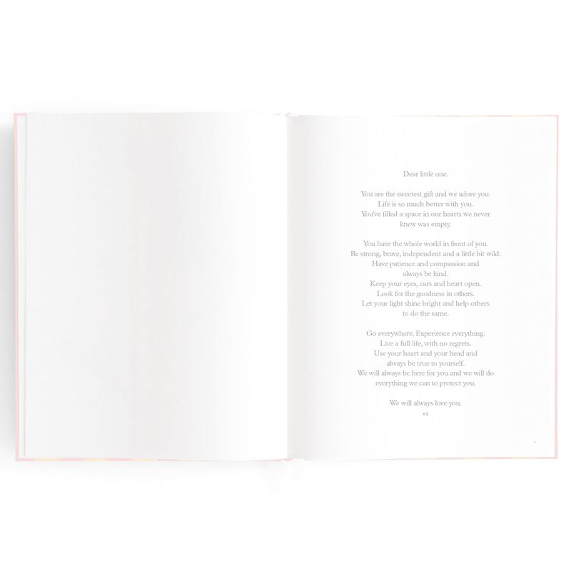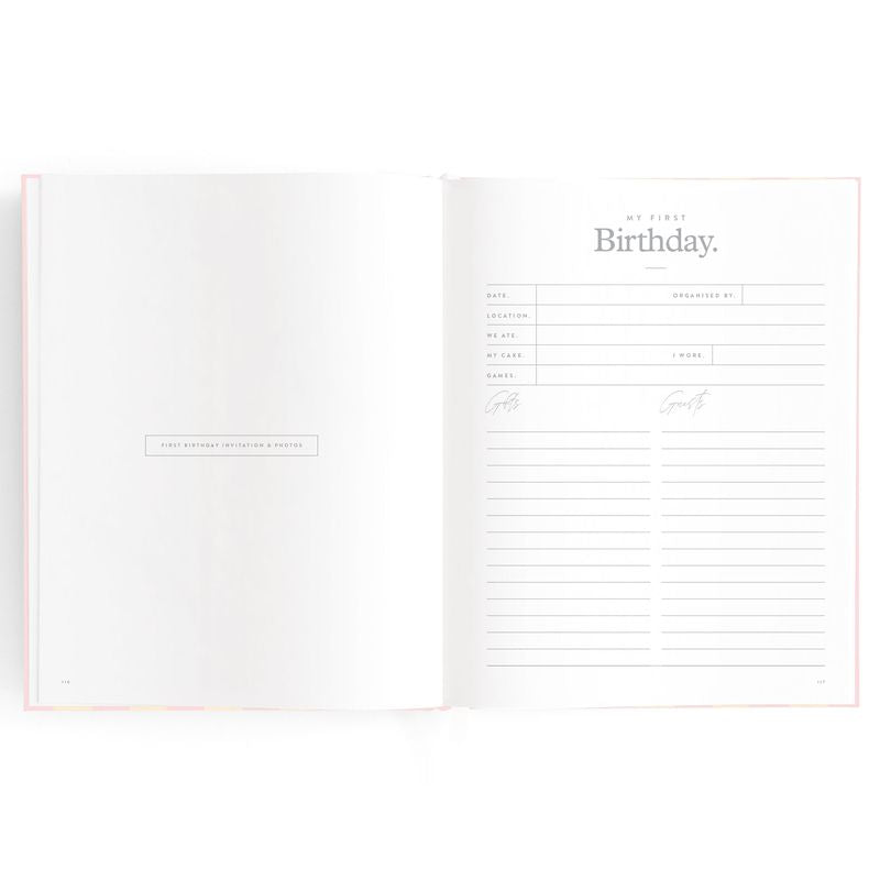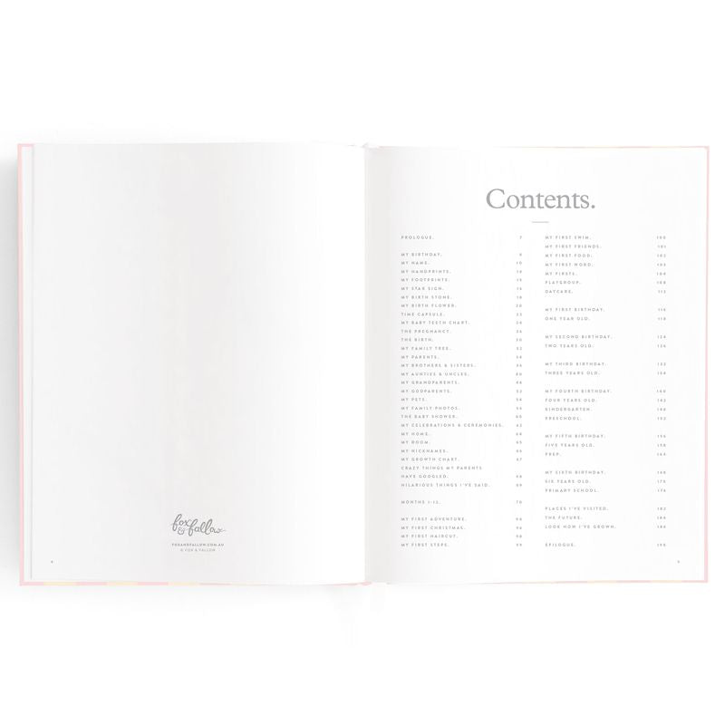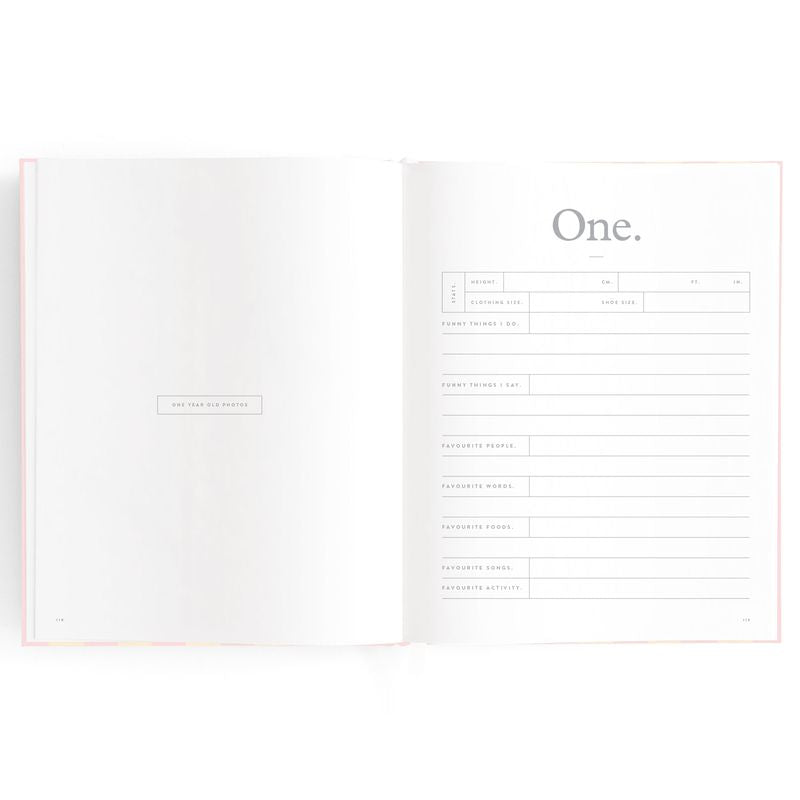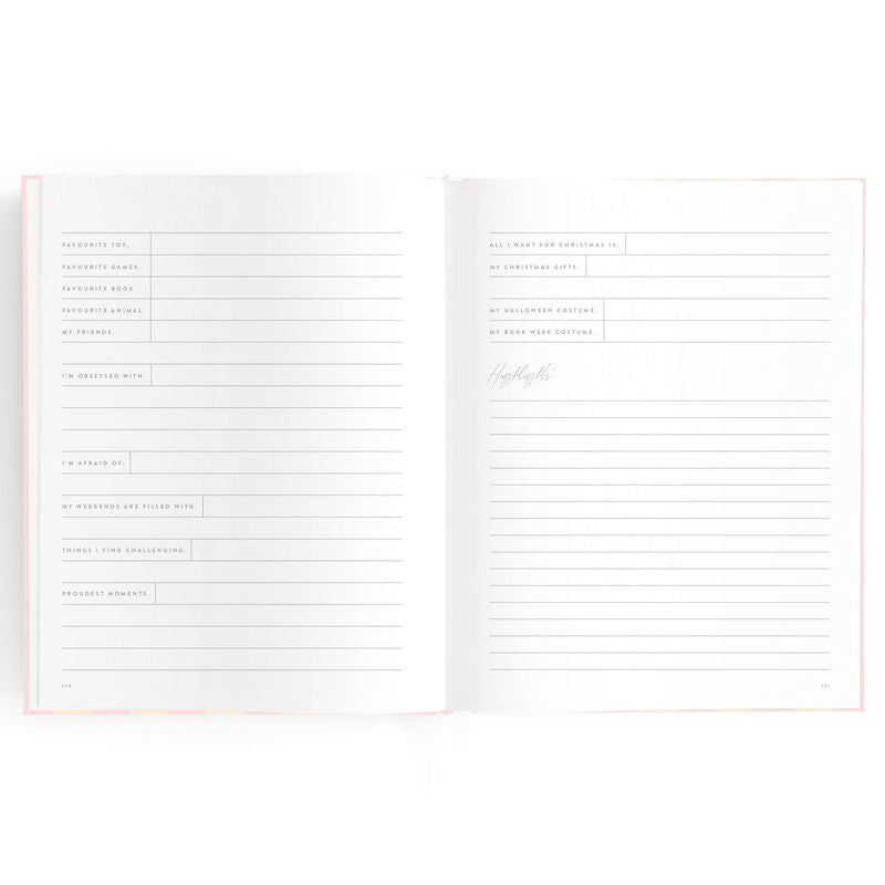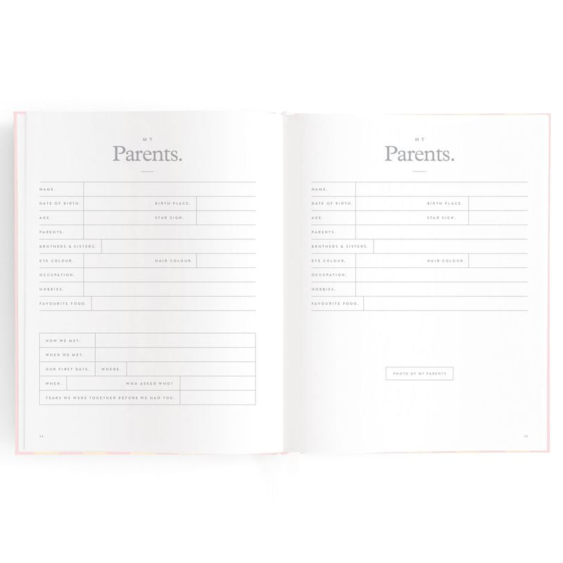 A beautiful keepsake for the whole family to enjoy. Includes: important milestones and firsts, family profiles, family tree and travel map, playgroup and daycare through to kindy and school years, time capsule, nicknames and celebrations, pets, friends, birthdays and more. 190 pages.