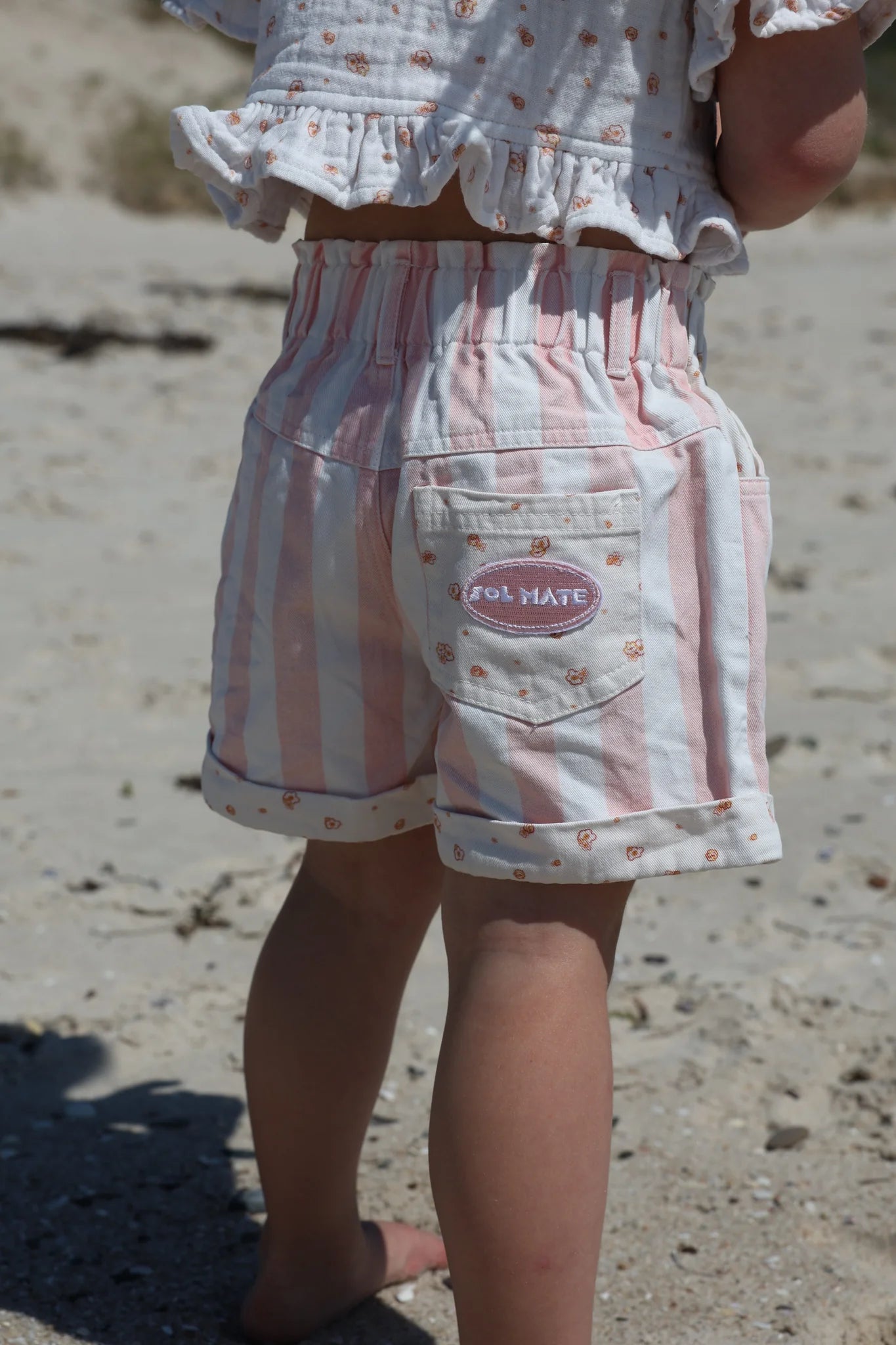 Featuring a sweet pink stripe print, elasticated waistband, and an adorable back pocket finished with a Sol Mate logo patch, these shorts are as practical as they are cute. Easy to pull on, easy to style, and perfect for everyday adventures.
