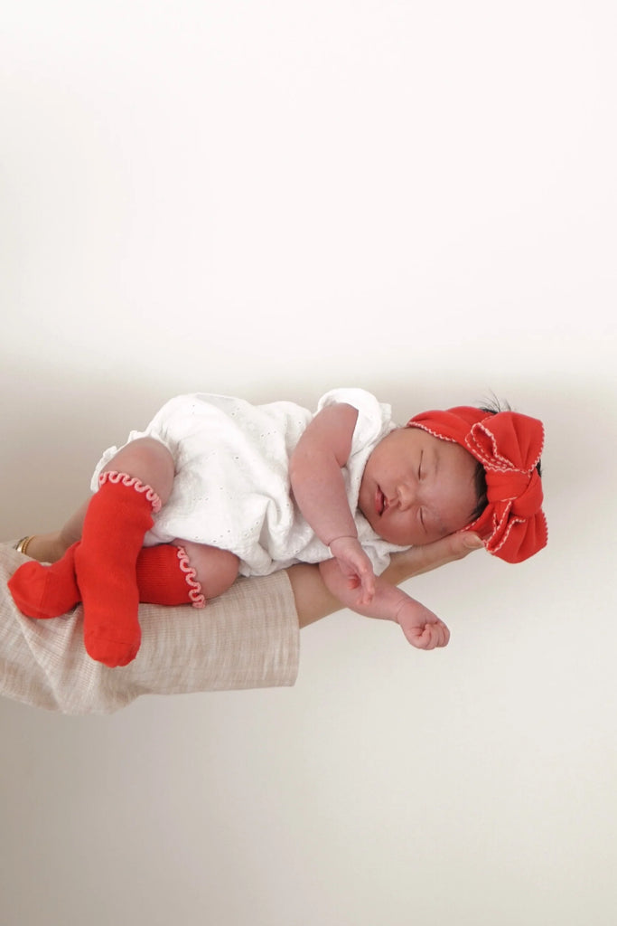 Beautiful soft knitted headband in our Scarlet colour with contrast colour trim. Mix and match with items from our Christmas Collection.