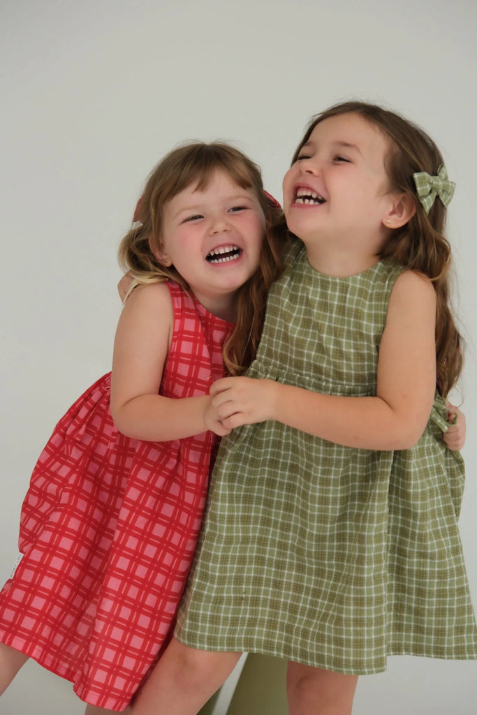 Cotton dress featuring our exclusive Jolie print. Adjustable ties at waist and buttons on the back for easy on/off. Mix and match with items from our Christmas Collection.